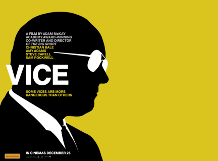 Oscar winning writer/director Adam McKay (The Big Short) brings his trademark wit to the true story of US Vice President Dick Cheney in Vice. George W. Bush (Rockwell) wins the 2000 election, but it’s Cheney (Bale) who quietly takes charge, wielding his newfound power as vice president to reshape the country and the world – with lasting consequences. Christian Bale, Amy Adams, Steve Carell and Sam Rockwell are at the top of their game, delivering hilarious, uncanny portrayals of America’s most powerful players. A film about those who have power, those who want power, and those who abuse it, Vice is a smart, irreverent comedy-drama that will shock and entertain in equal measure.