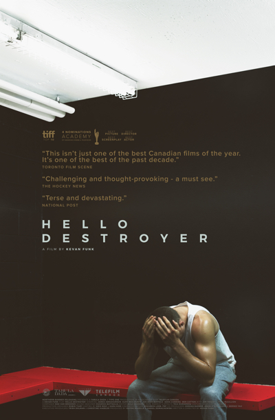 HELLO DESTROYER features a central breakout performance from Jared Abrahamson (TIFF Rising Star 2016) as Tyson Burr – a newcomer to the tightly–knit Prince George Warriors. Despite his mild manner off the ice, Tyson is conditioned by his coaches and contemporaries to become the team’s “enforcer” – charged with protecting the more skilled players via sheer brute force. But when an unexpectedly violent play results in tragedy, Tyson finds himself ostracized by teammates, the league, community and family alike.