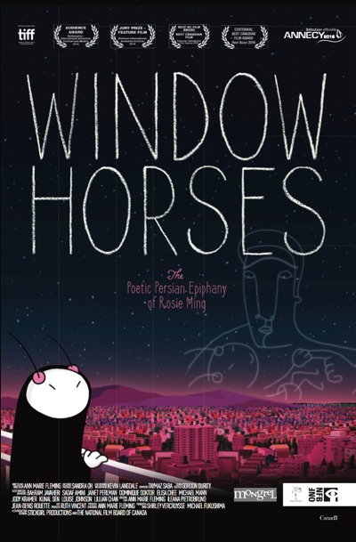 The latest award-winning feature–length animation from prolific independent filmmaker, writer and visual artist Ann Marie Fleming (THE FRENCH GUY, I WAS A CHILD OF HOLOCAUST SURVIVORS) WINDOW HORSES tells the tale of Rosie Ming, an Asian–Canadian aspiring poet who dreams of travelling to Paris, which she considers her spiritual home, but instead wins a competition to attend a literary festival in Iran.