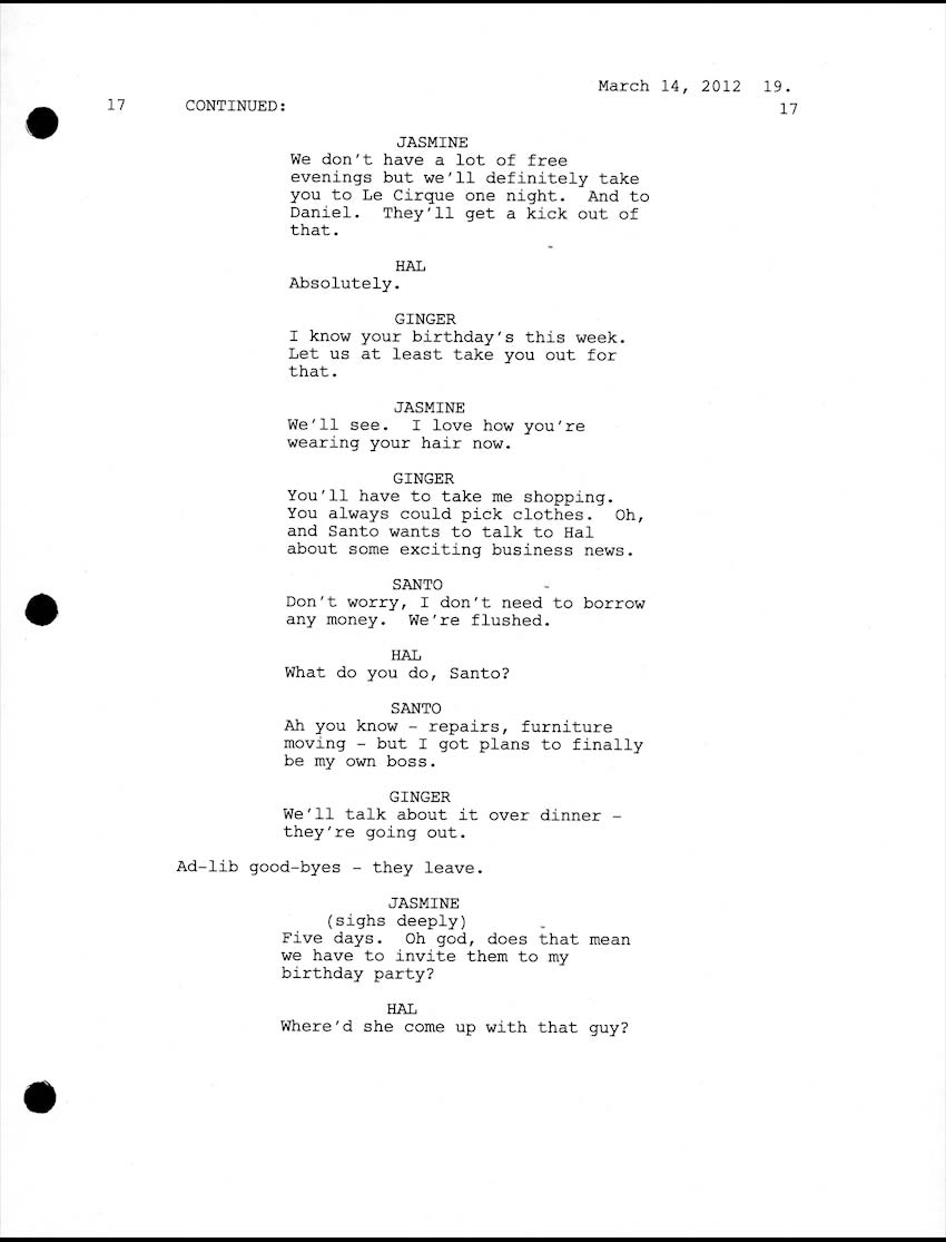 Feeling that her sister might be right about her poor taste in men, Ginger starts seeing Al (Louis C.K.), a sound engineer whom she considers as a step up from Chili. Jasmine sees a potential lifeline when she meets Dwight (Peter Sarsgaard), a diplomat who is quickly smitten with her beauty, sophistication and style.