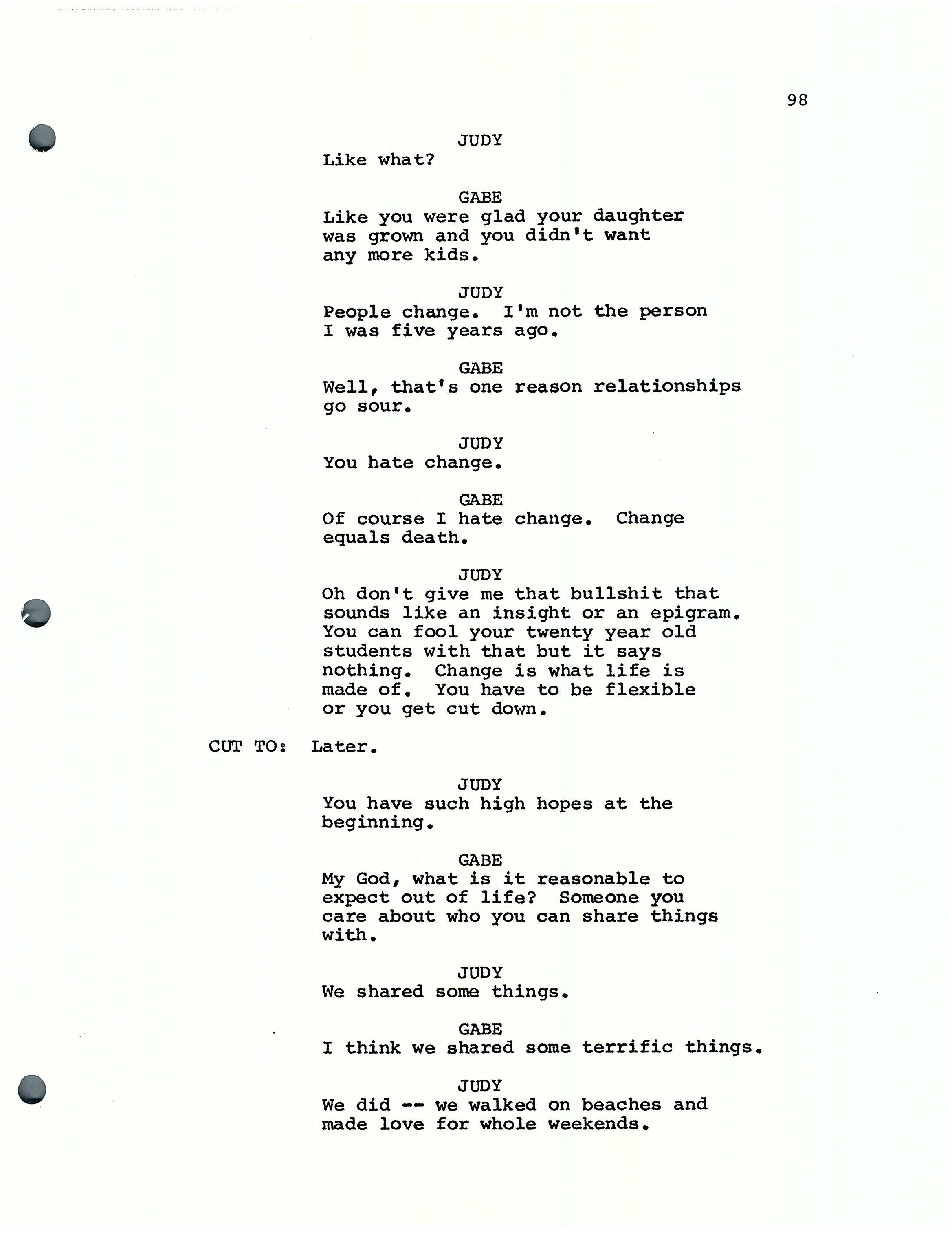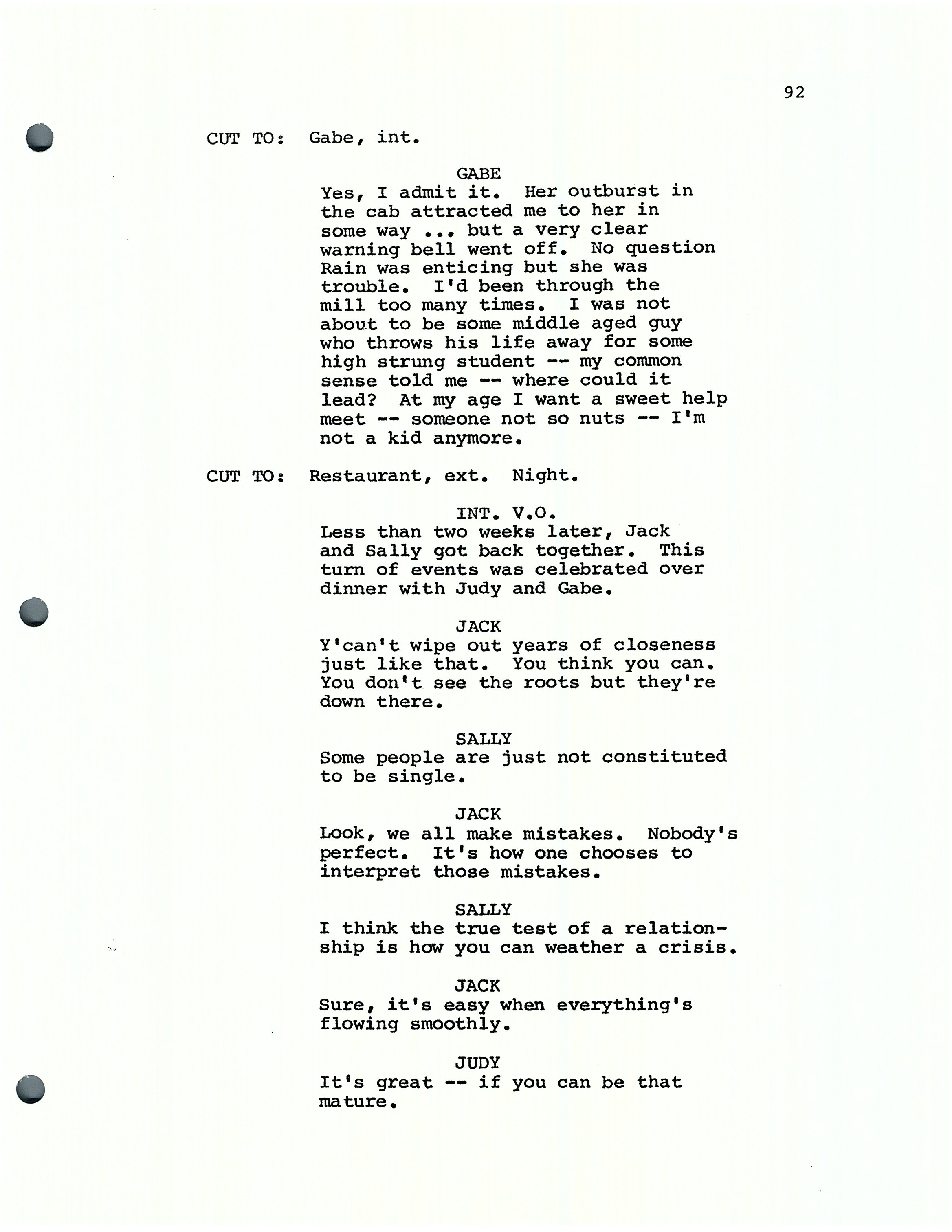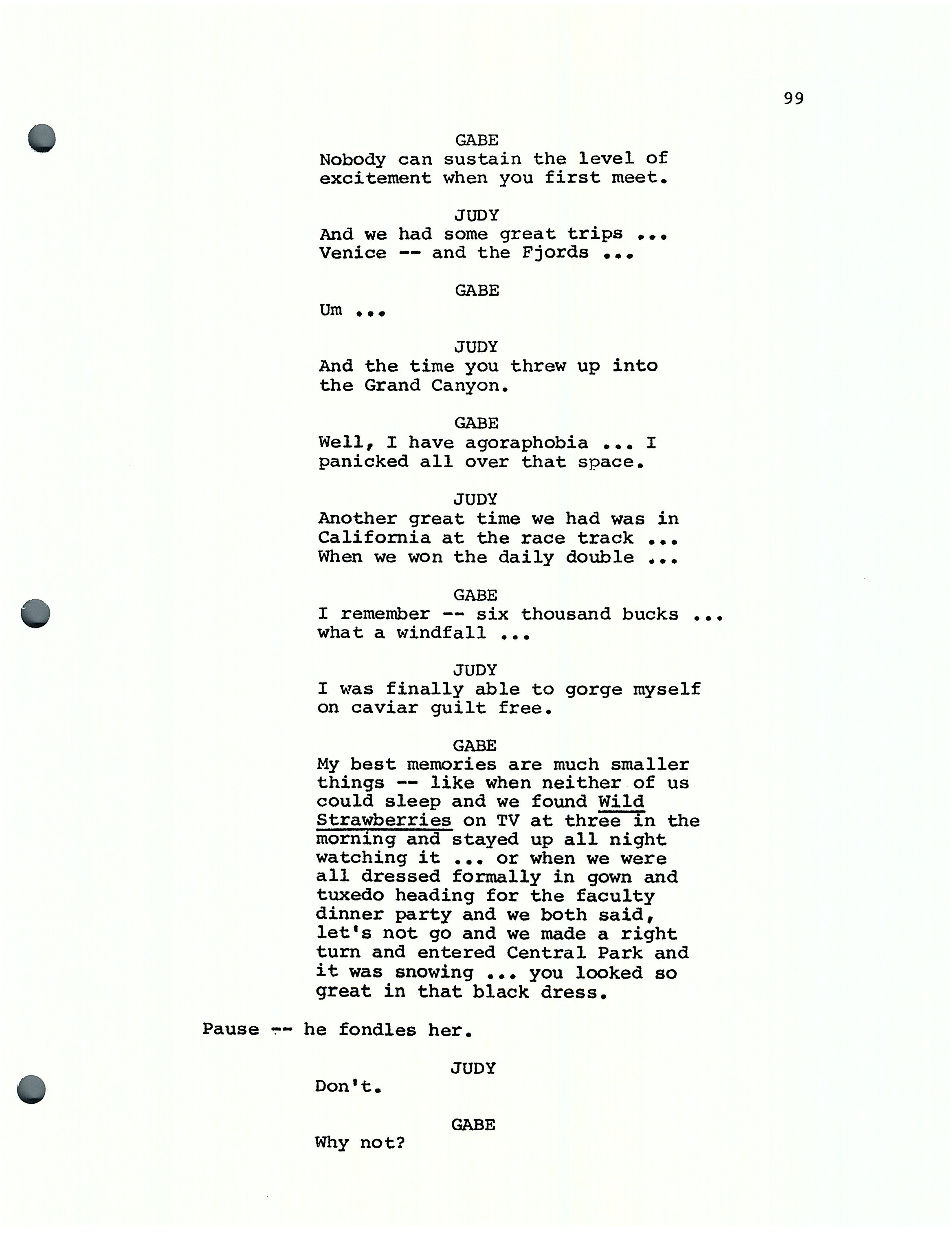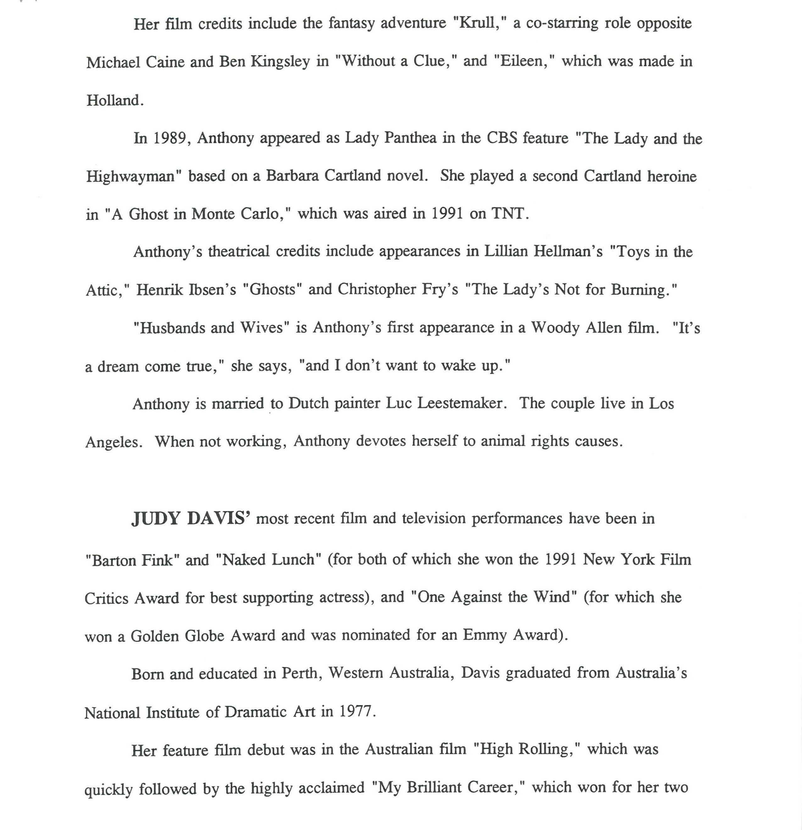 As he has in many of his previous films, Allen blends his comedic and dramatic styles in HUSBANDS AND WIVES. The film explores with irony and humor themes Allen has been concerned with over the years -- contemporary relationships, commitment, change and resistance to change, disruption and regeneration, and the many facets and complexities of the human heart.