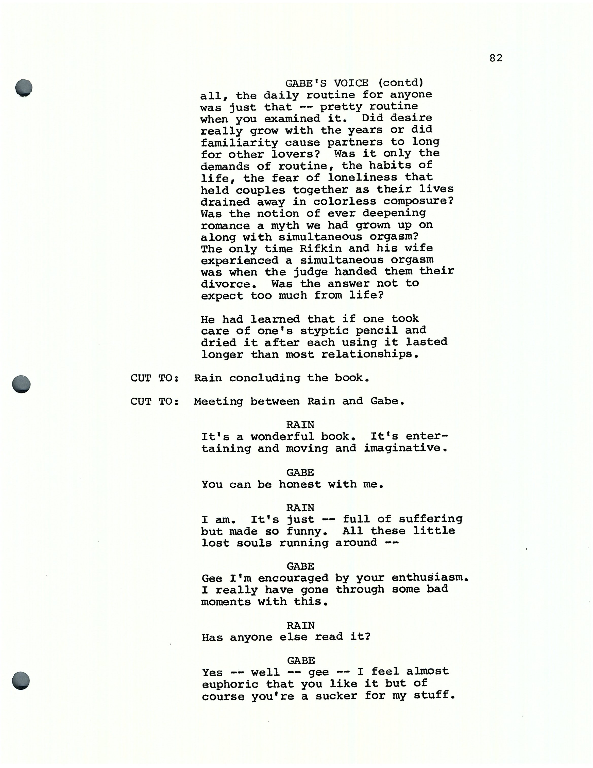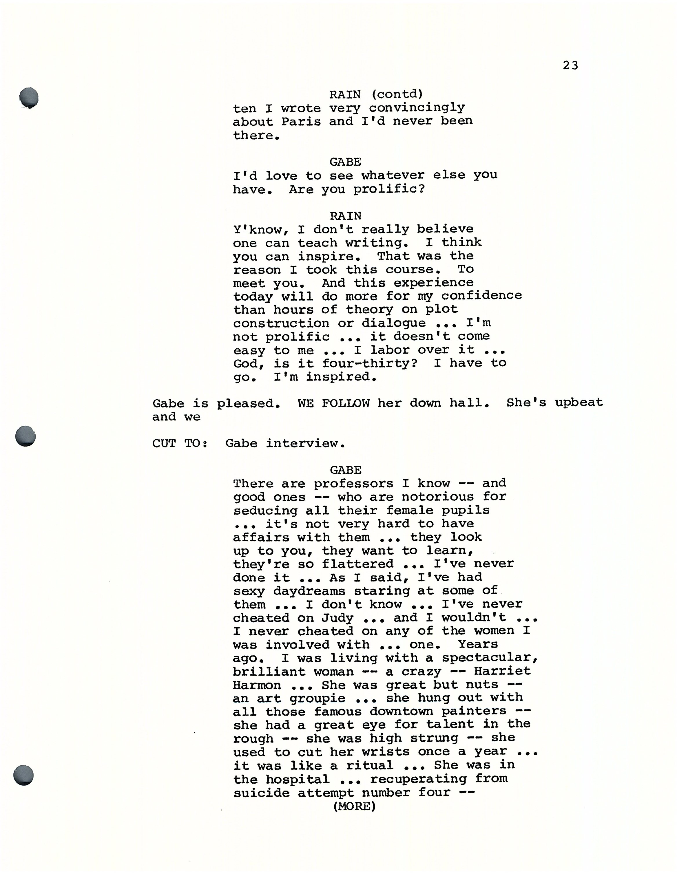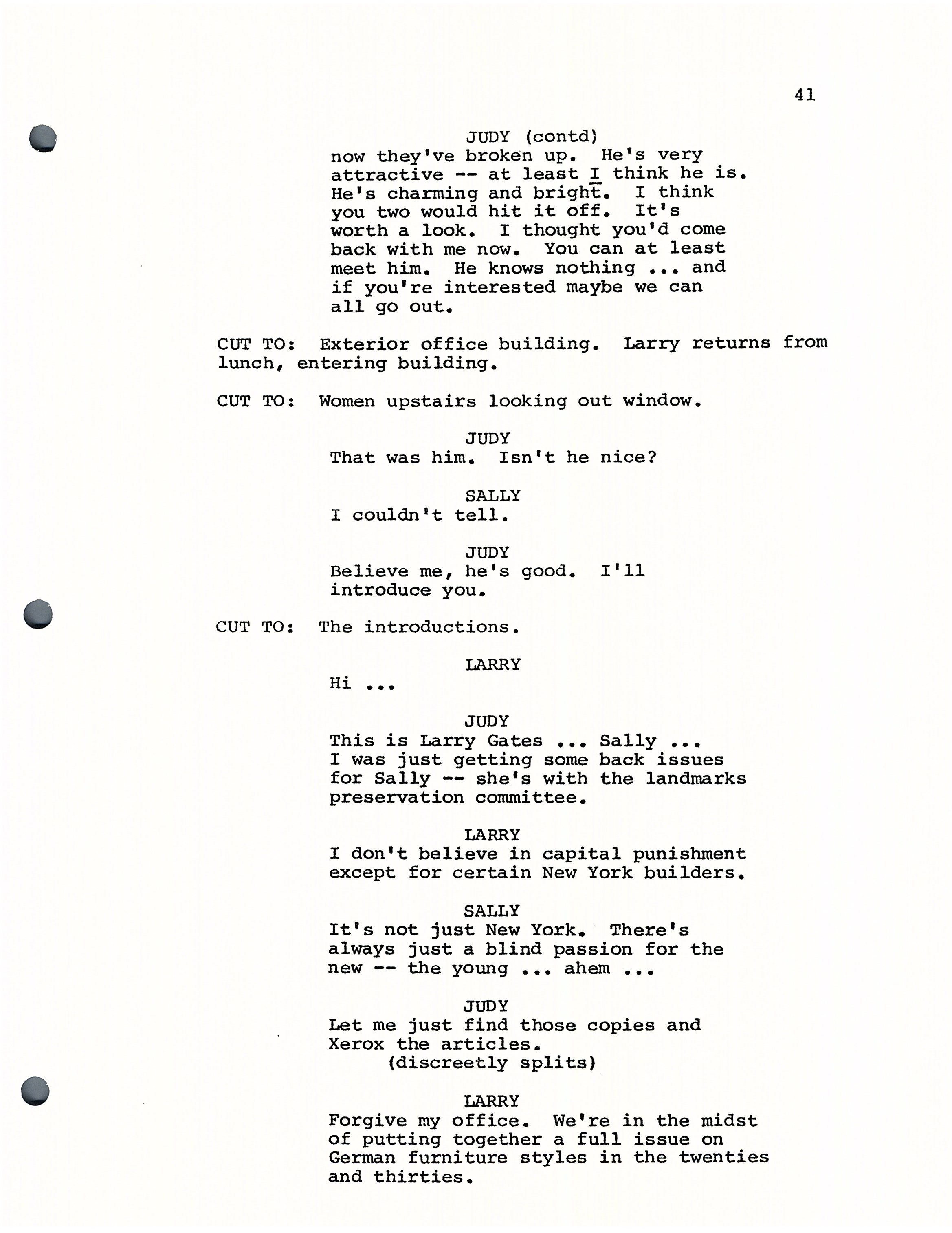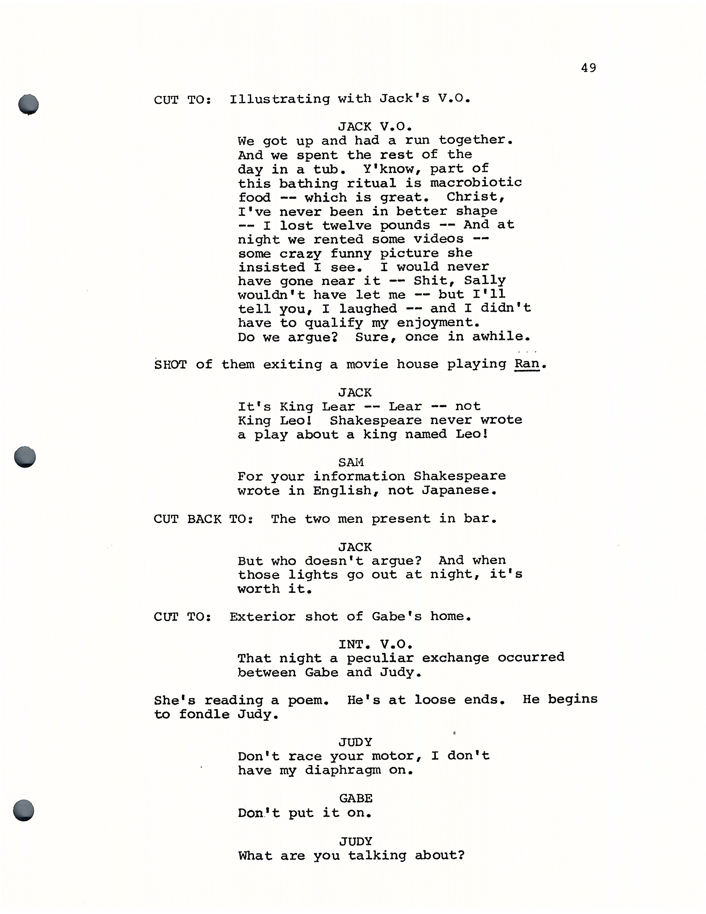 As he has in many of his previous films, Allen blends his comedic and dramatic styles in HUSBANDS AND WIVES. The film explores with irony and humor themes Allen has been concerned with over the years -- contemporary relationships, commitment, change and resistance to change, disruption and regeneration, and the many facets and complexities of the human heart.