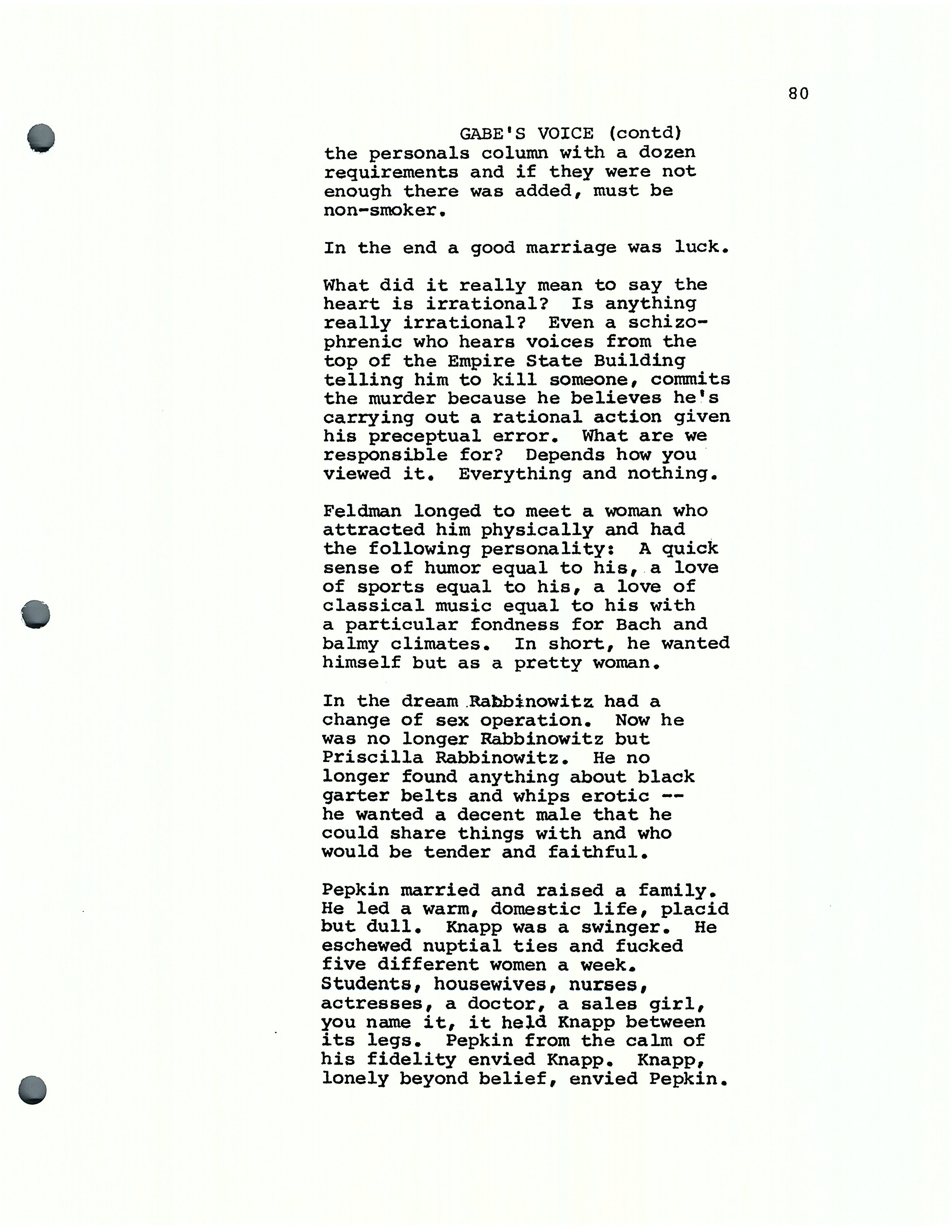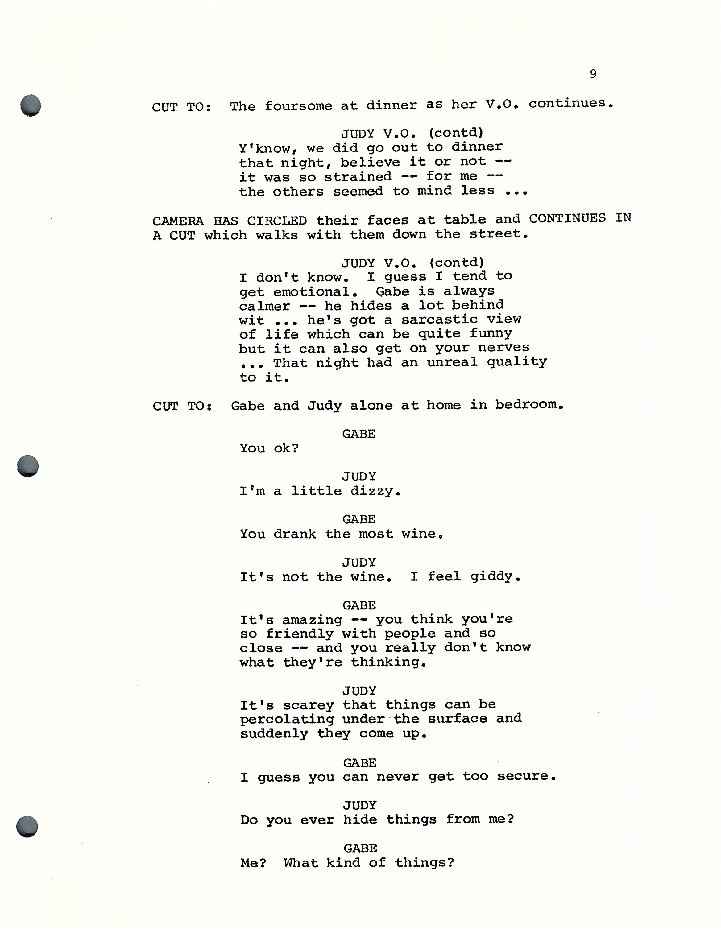 HUSBANDS AND WIVES, written and directed by Woody Allen, is a tale of two married couples confronted with change who are forced to review and re-evaluate universal questions about marriage, friendship, fidelity, romance, trust and love.
