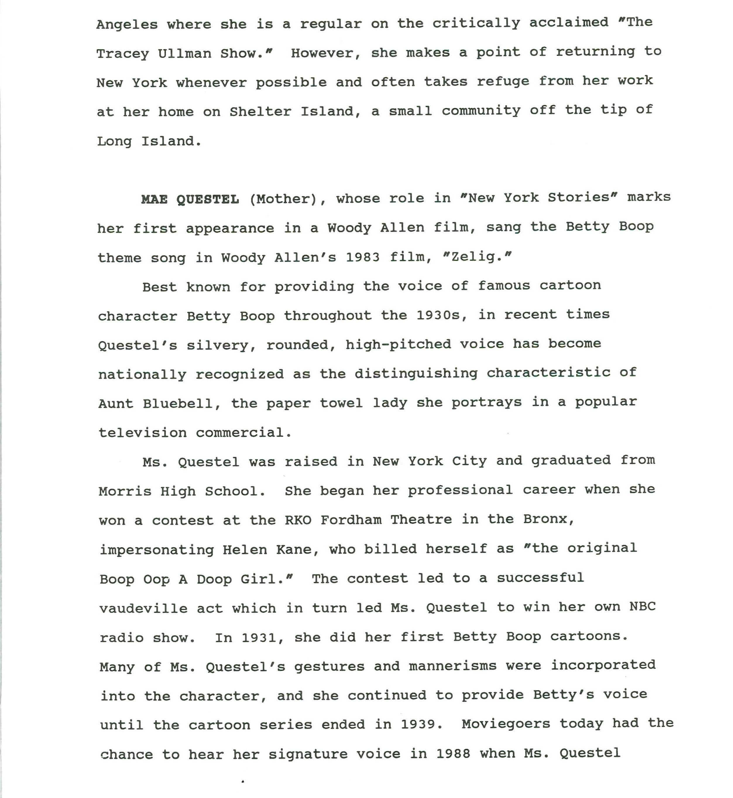 A remarkable collection of three cinematic short stories that comprise a true movie event, NEW YORK STORIES marks an historic collaboration between three of the most prestigious directors working in films today: Martin Scorsese, Francis Coppola and Woody Allen.