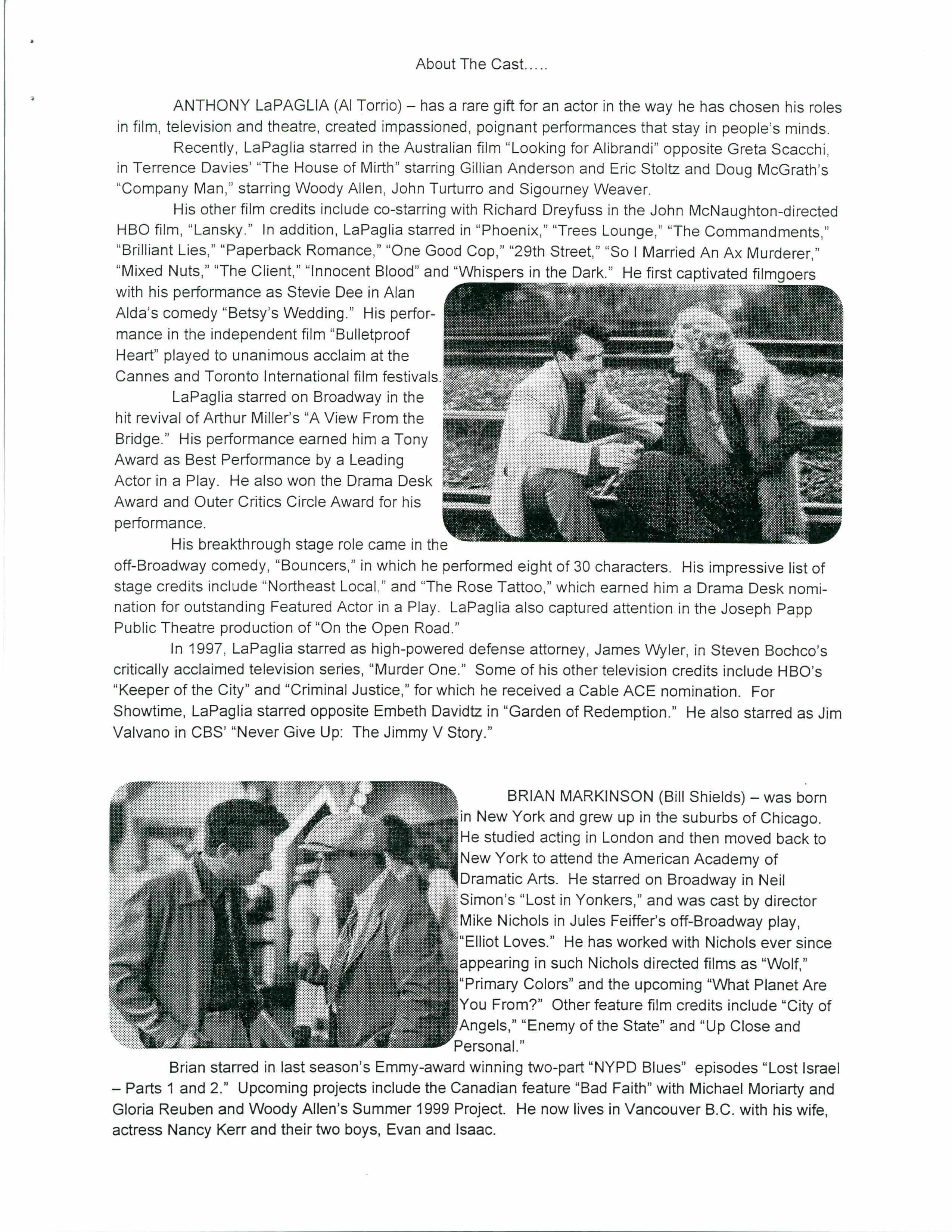 The experience began with Woody Allen's life-long love of jazz music. Although jazz themes have wended their way through the background of many of his prior films, SWEET AND LOWDOWN is a Jazz- age fable about an artist who captured both the renegade and bittersweet spirit of jazz. Allen conjured the fictional Emmet Ray from his imagination, but the character resembles a composite sketch of several real-life jazz artists - some of whom exhibited sublime virtuosity in their art but chaotic, comical foibles in their personal lives.