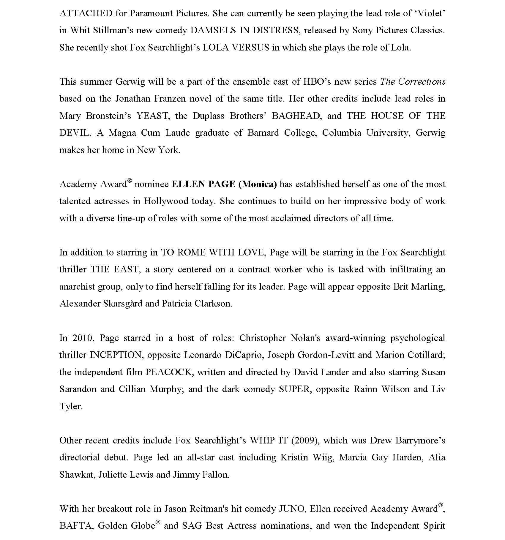 Well-known architect John (Alec Baldwin) is vacationing in Rome, where he once lived in his youth. Walking in his former neighborhood he encounters Jack (Jesse Eisenberg), a young man not unlike himself. As he watches Jack fall head-over-heels for Monica (Ellen Page), his girlfriend Sally’s (Greta Gerwig) dazzling and flirtatious friend, John relives one of the most romantically painful episodes of his own life.
